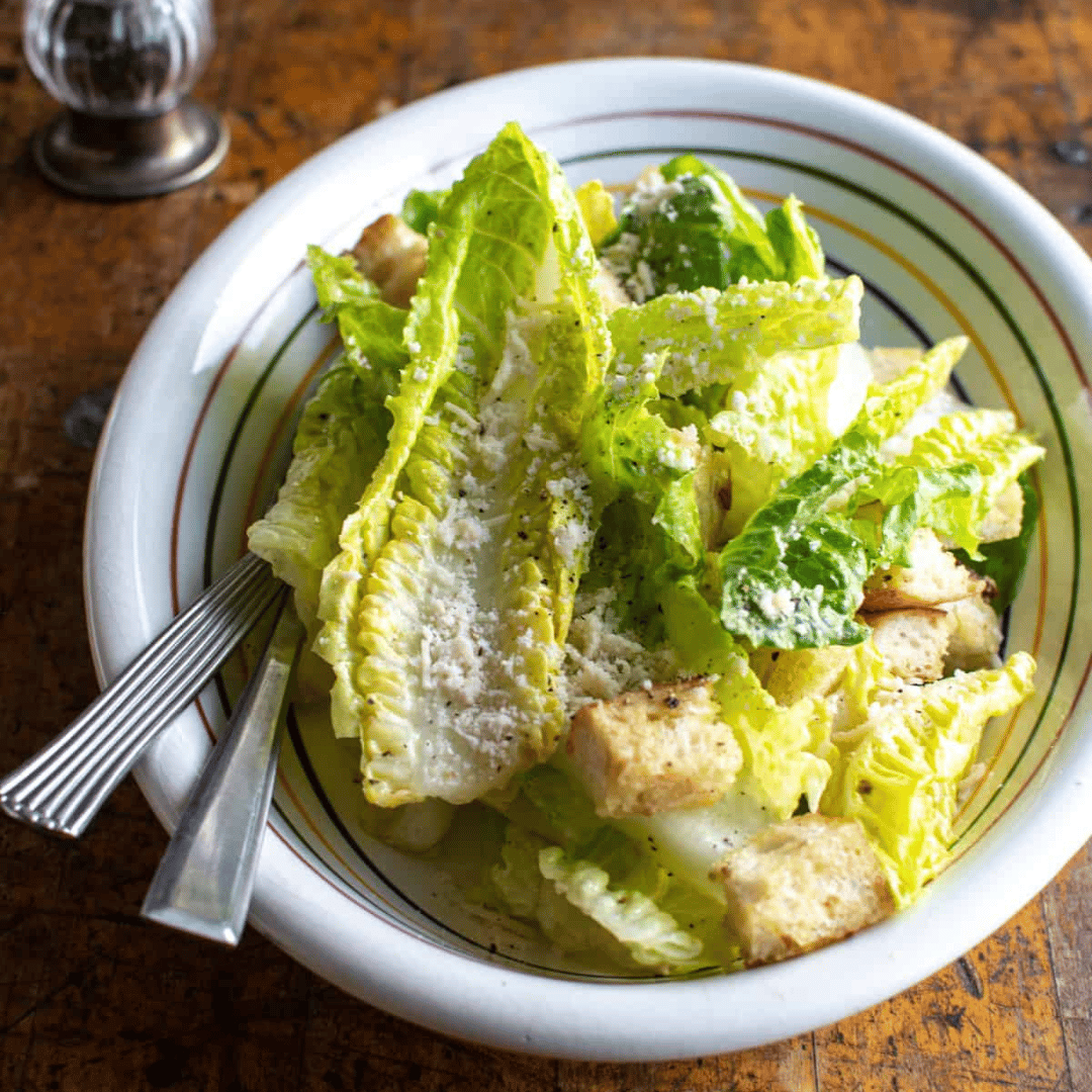 Crisp romaine, garlicky dressing, and crunchy croutons—homemade and irresistible. 😋