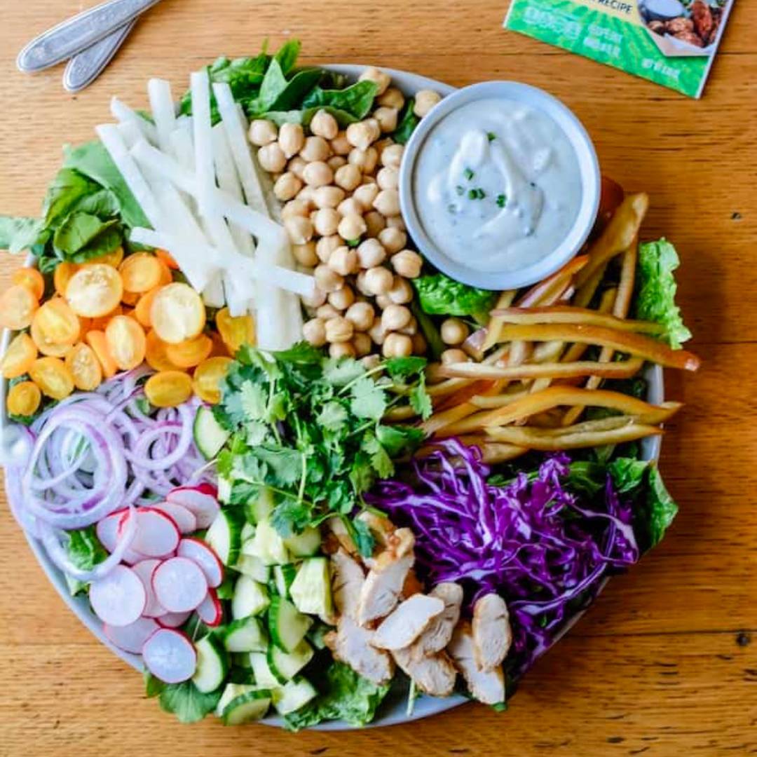 Loaded with crunchy veggies and creamy dressing, this hearty salad easily doubles as dinner. One reader said: "Oh, that salad with chipotle-lime chicken can only be the dinner in heaven! I will do it! For sure! 🙂⭐⭐⭐⭐⭐" - Sandra 🌶️ Small Bites & Flavor Boosters