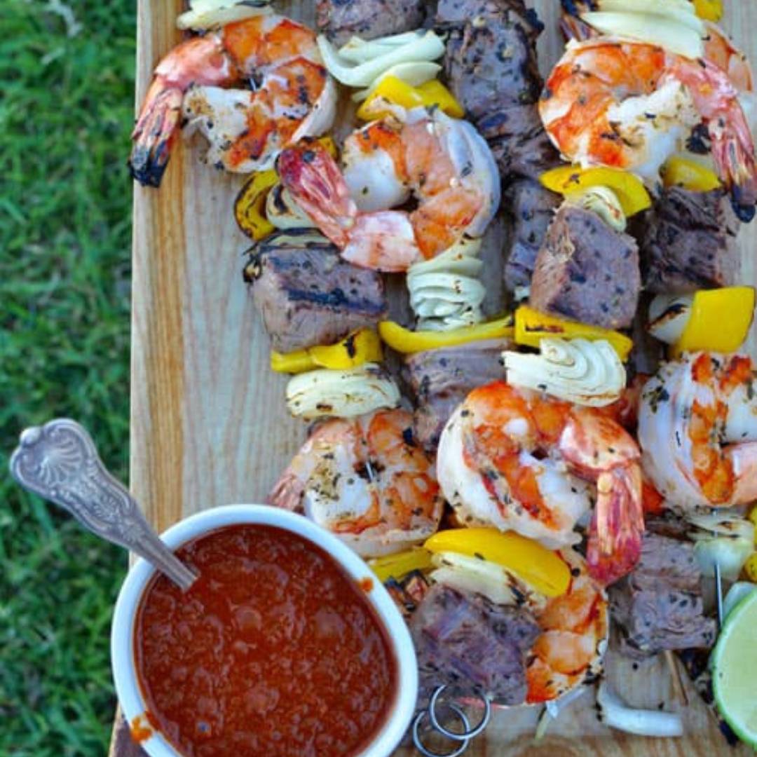 Grilled shrimp and steak kebabs are the ultimate surf and turf summer dinner. Serve with a grilled tomato-chile salsa for the ultimate healthy dinner. One reader said: "Hi – I just made the grilled shrimp & steak kabobs. Soooo good!! Thanks for all the great food & cooking tips this weekend 🙂⭐⭐⭐⭐⭐" - Lesley